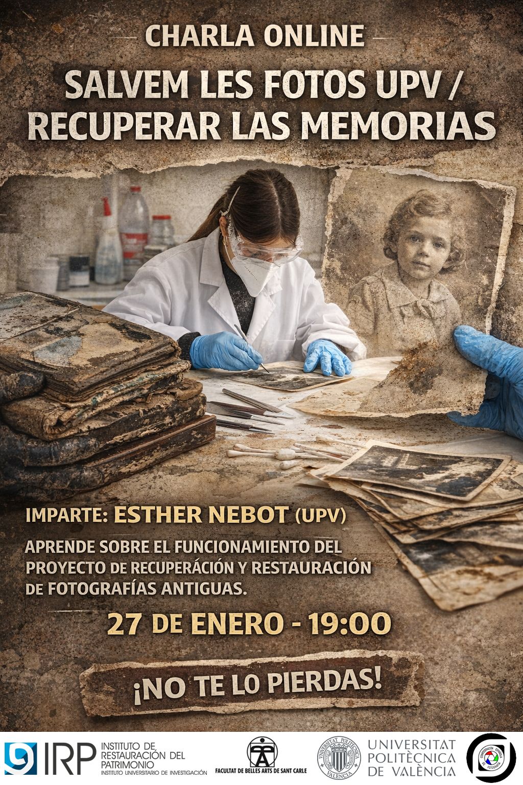 El dia 27 de gener a les 19.00 a través de la plataforma MEET (Google), Esther Nebot de la Universitat Politècnica de València (UPV) ens explicarà sobre el projecte de restauració de les fotografies afectades per la DANA.